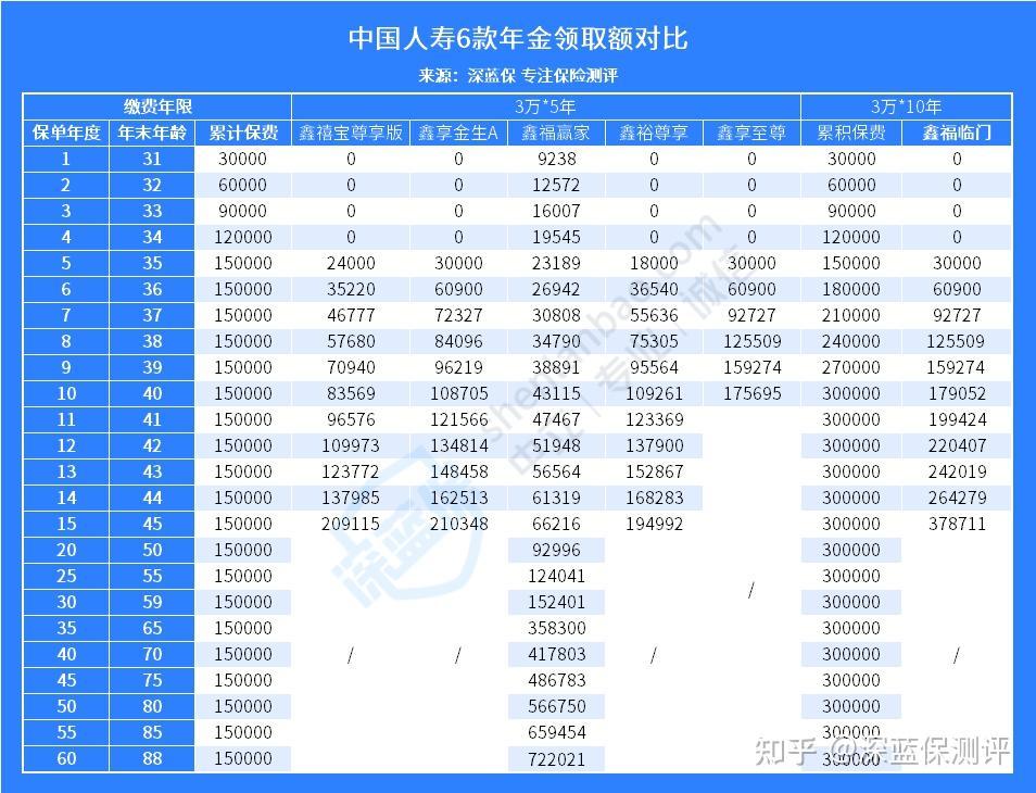 深蓝君筛选了6款年金保险进行了对比,具体保障如下: