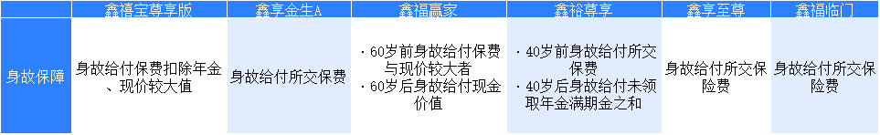 鑫福赢家和鑫福临门,因为保障期限、缴费期限的差异,没办法和这几款直接对比。