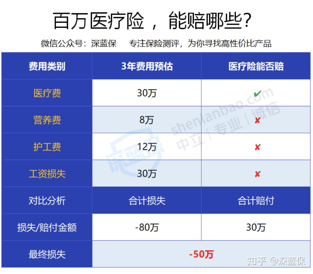 如果买了百万医疗险,黄先生首年 30 万的医疗费,基本都能 100% 报销。