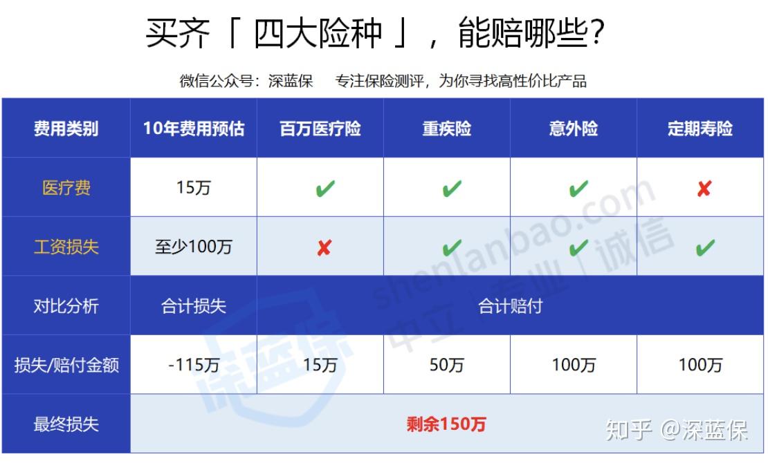 不同保险作用不同,想要全面的保障,四大险种缺一不少。希望大家都能科学地认识保险,用好保险。