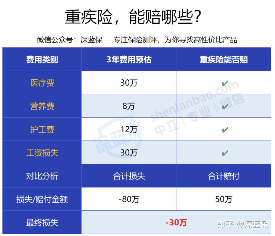 虽然重疾险赔的钱,想怎么花就怎么花,但如果只买了 50 万保额,黄先生还有 30 万的损失。