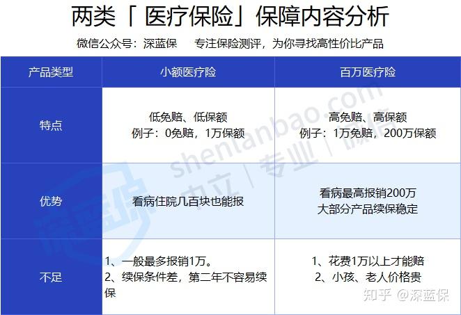 但深蓝君还是建议你在有百万医疗险的前提下, 预算充足再去考虑小额医疗险。