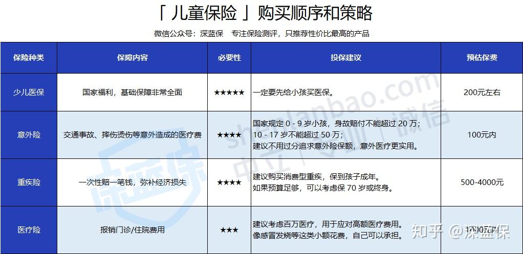 给孩子配置保险,深蓝君建议你遵循下面这个配置顺序: