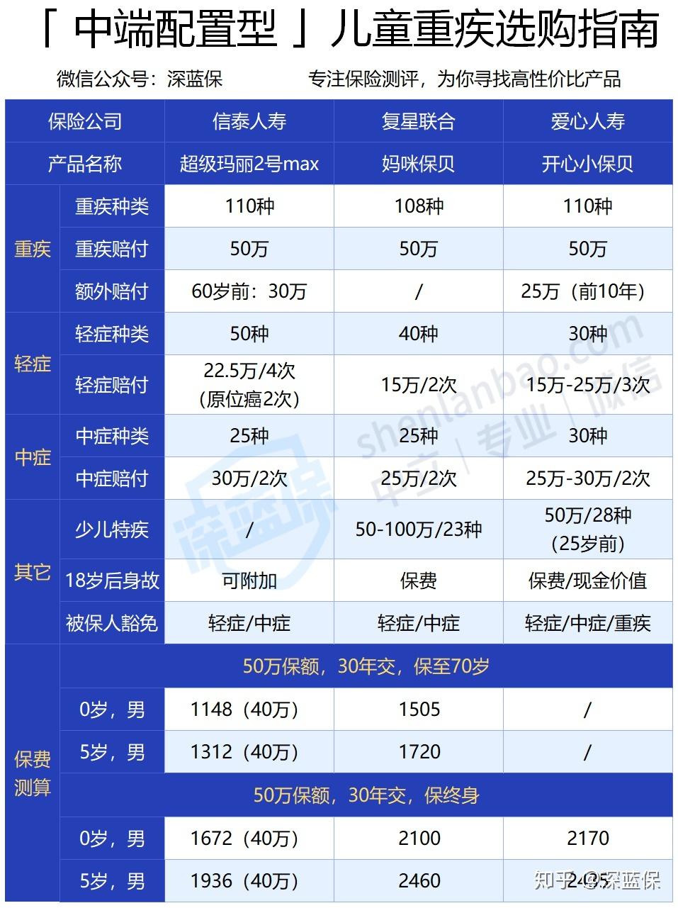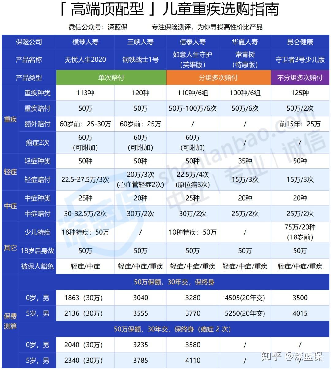 如果你更看重身故保障: 无忧人生2020就是保终身带身故的首选,60 岁前患重疾,可以多赔 50 - 60%的保额,而且轻症/中症赔付比例比同类产品更高。不过只适合 5 岁以后的孩子买,因为 5 岁的孩子才能买到 50 万。介意这点的话,可以考虑 钢铁战士1号,没有保额的限制。