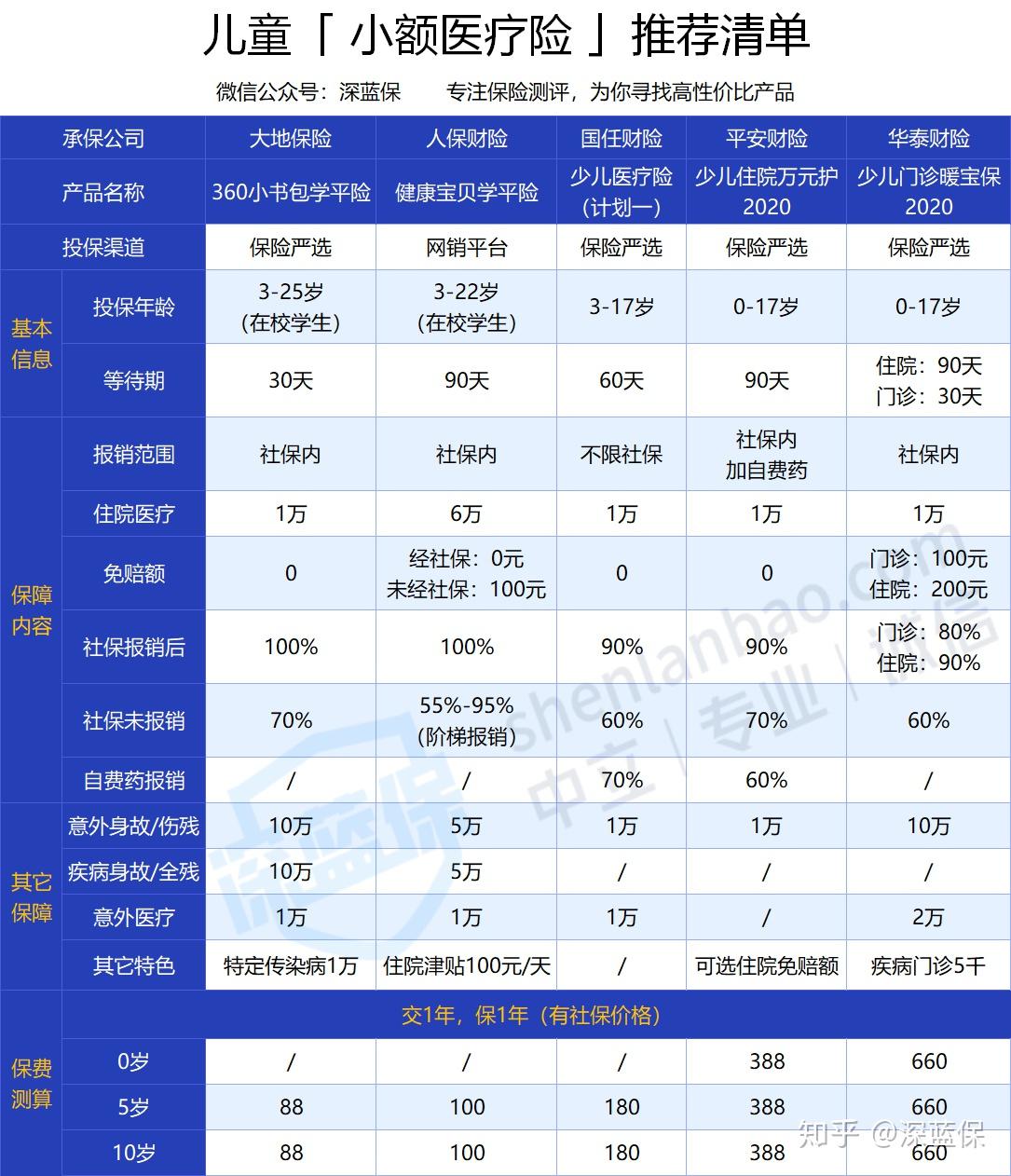 如果看重性价比:360 小书包 每年才 88 元,就有 1 万的住院报销;如果觉得不够,人保健康宝贝有 6 万医疗保额,价格贵了十几块。