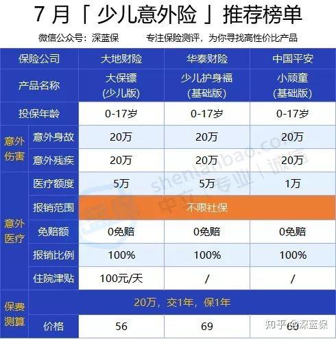 1、儿童意外险推荐榜单