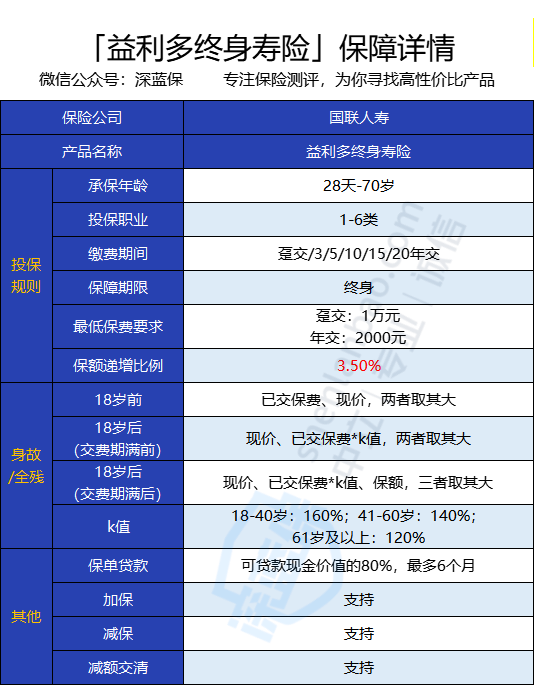 最近,国联人寿新上线了一款终身寿险——益利多终身寿险。