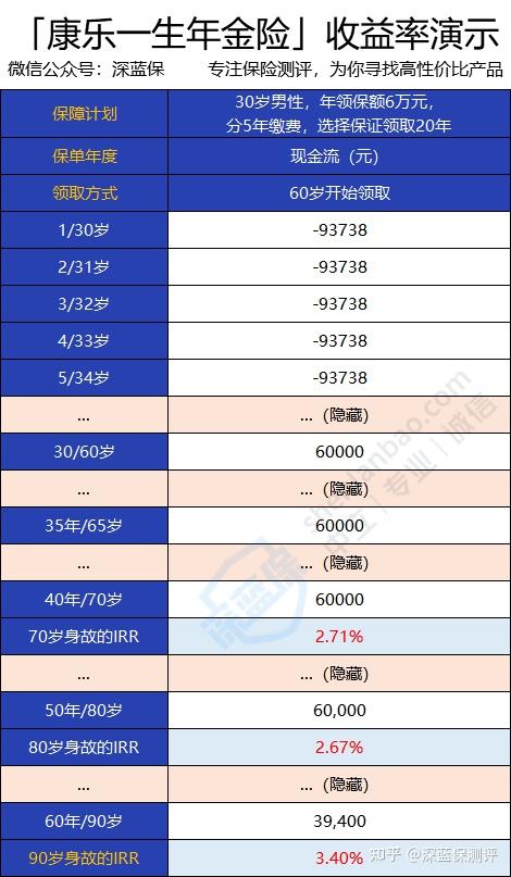市面上有的产品在70或80岁身故时,收益率就能达到3%以上,相较之下,康乐一生年金险在这时的收益率就逊色一些了。