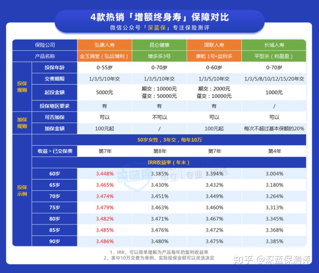 对此,深蓝君早已提前筛选出了一些比较热门的产品,并以“50岁女性、每年10万、3年交”为例,让我们对比看看这些产品各自的表现。