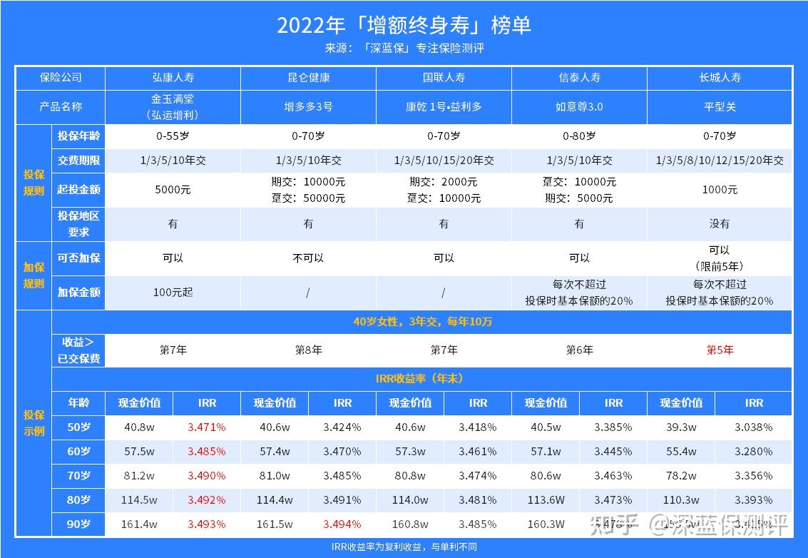 三、2022年增额终身寿险榜单