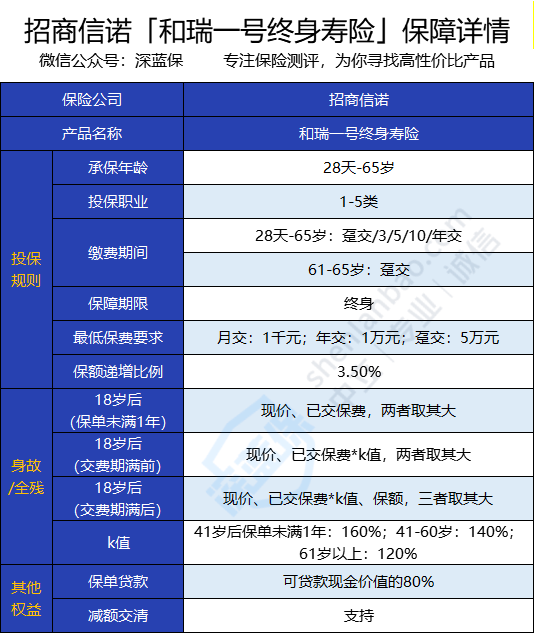 今天,我们来一起看看招商信诺推出的和瑞一号终身寿险。