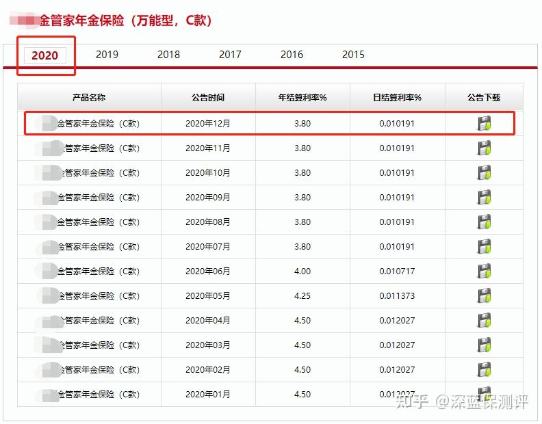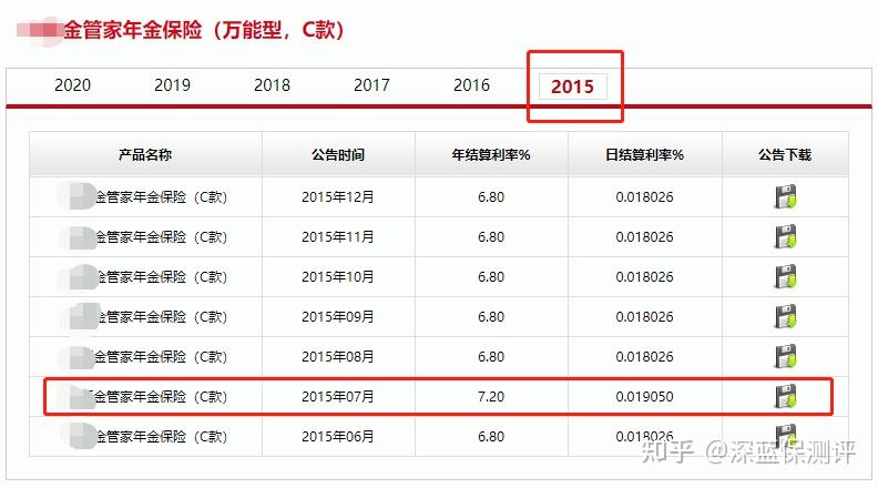 比如上面这款产品,2015年结算利率高达7.2%,而2020年却只有3.8%。