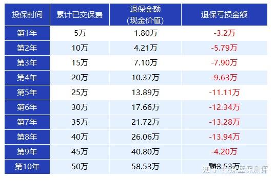 像我之前测评的某款产品就是这样,投保后第二年退保就要损失超过一半的钱。想拿保单现金价值超过已支付保费金,也就不可能了。