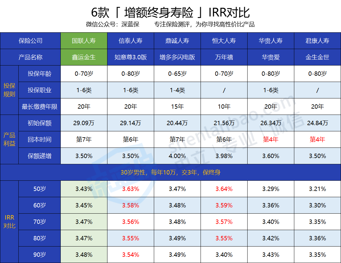 下面,我们再来看看鑫运金生终身寿险和同类产品相比,收益怎么样?