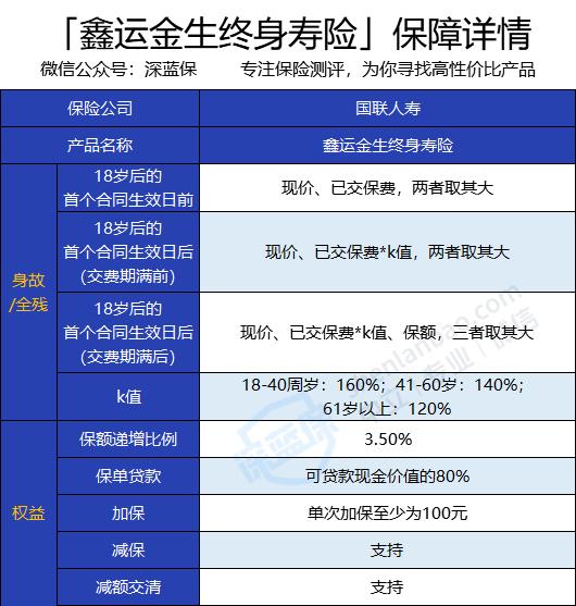 鑫运金生终身寿险是国联人寿推出的一款新品。