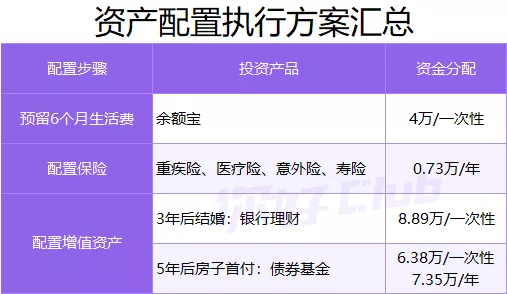 这里把小王的理财方案汇总如下: