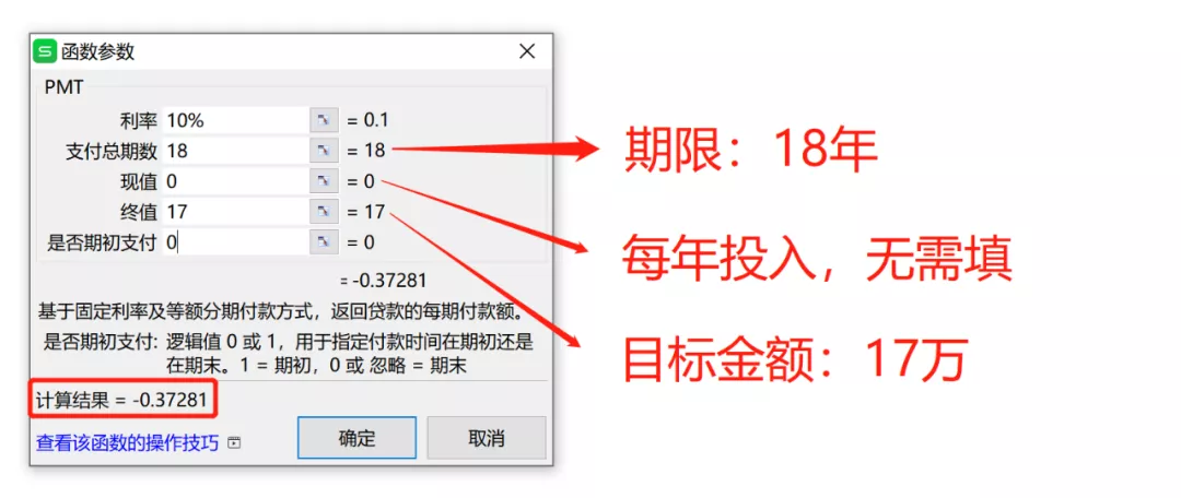 把这些数据统统填进 Excel 的“PMT 函数”: