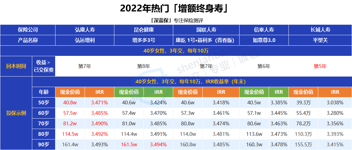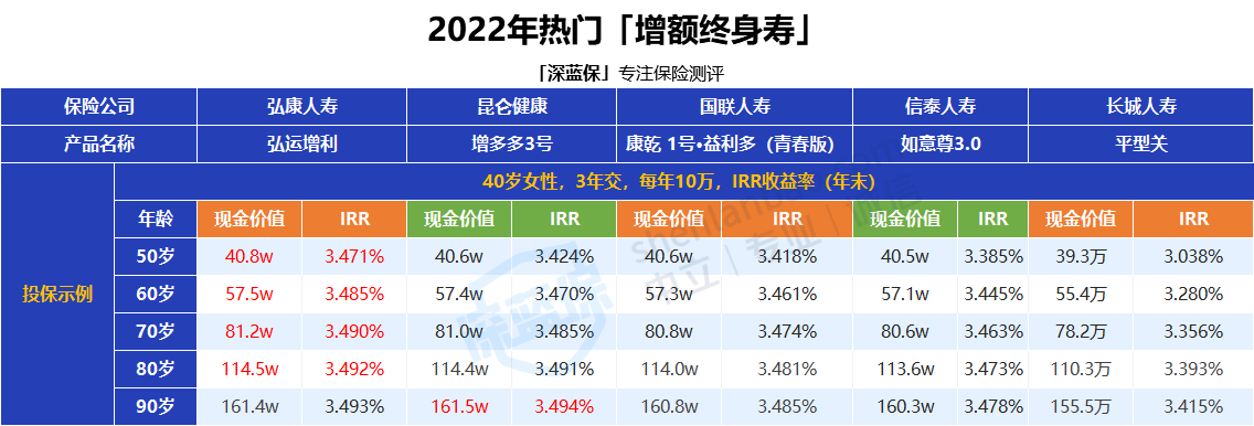 五、目前为止,有哪些优秀的增额终身寿?