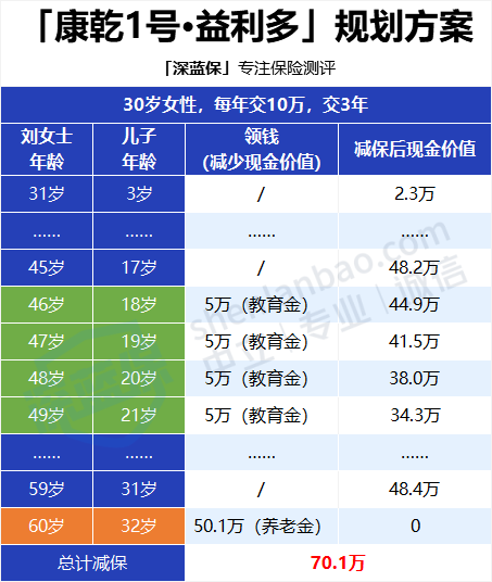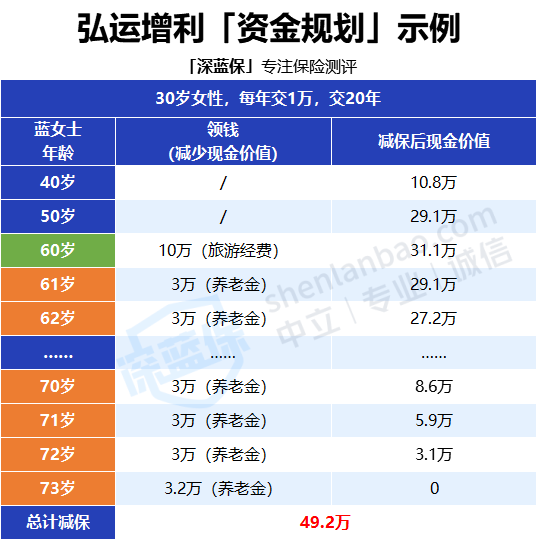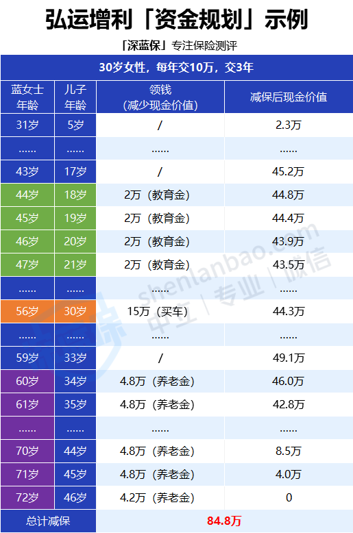 可以看到,蓝女士在每个年龄段都用弘运增利解决了不同的用钱需求。