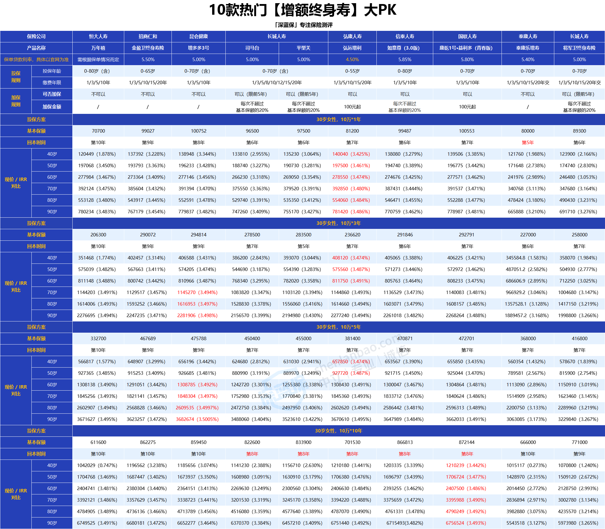 为了能让大家买到收益高的产品,我从线上、线下进行了产品汇总,最终通过irr的测算锁定了这 10 款: