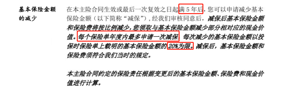 - 每次减保金额不能超过基本保额的20%。