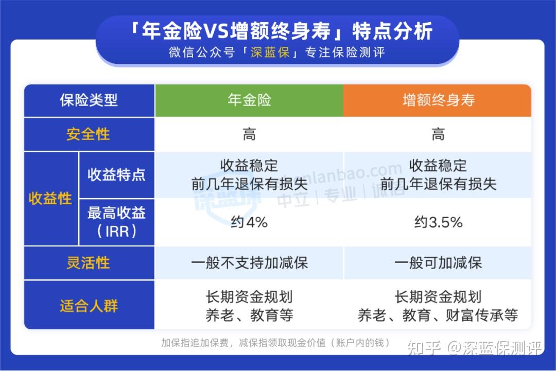 相比年金险,增额终生寿在短期内的增值速度更快,同时更多产品支持加减保,更加灵活但综合收益稍低。更适合用来规划需要灵活运用的资金。
