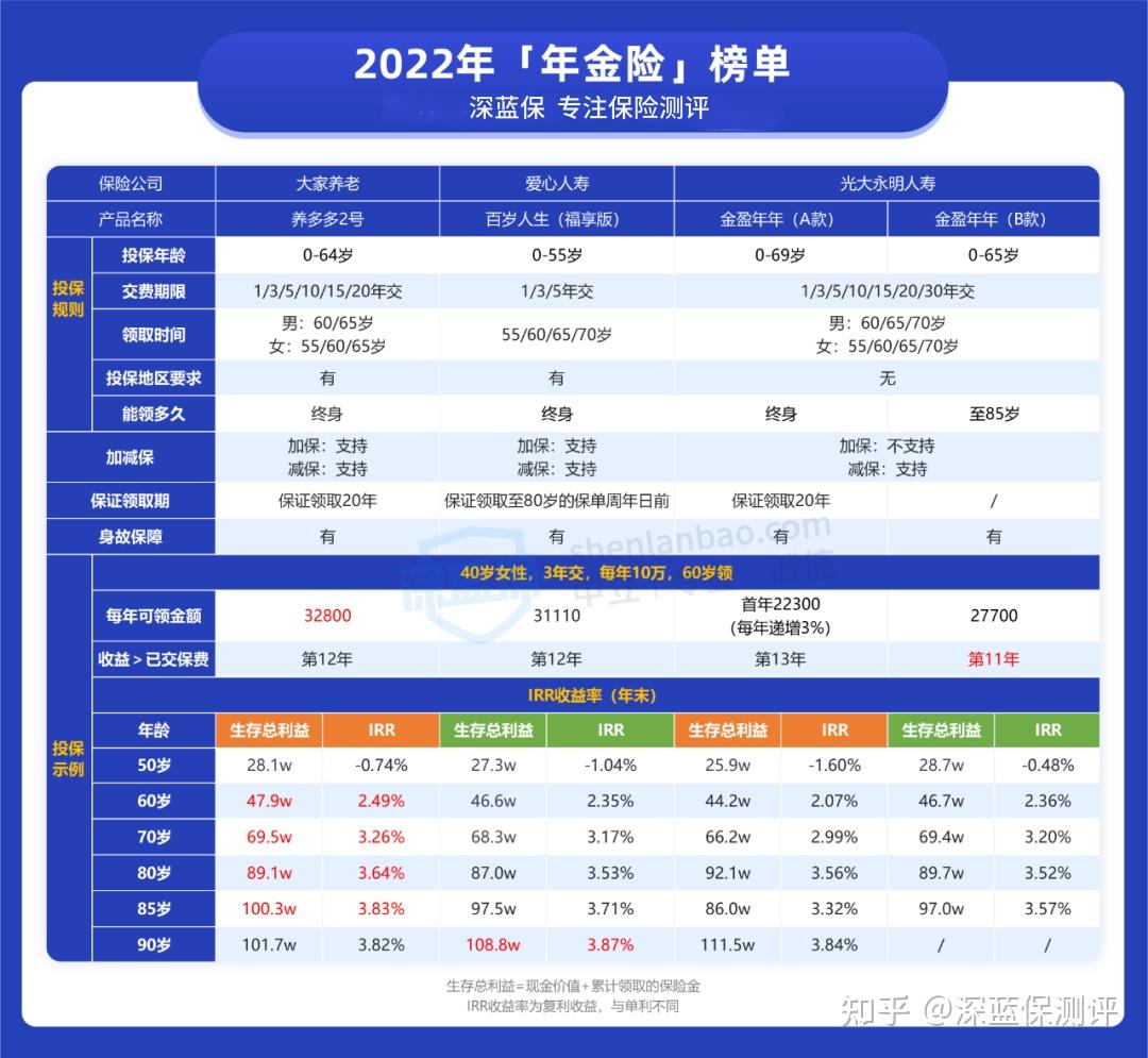 不过萝卜青菜各有所爱,2022年最好的年金险对不同的人来说,选择都是不一样的。