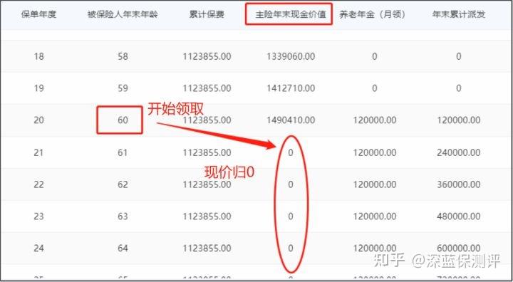 ①领取年金后,现金价值归零。