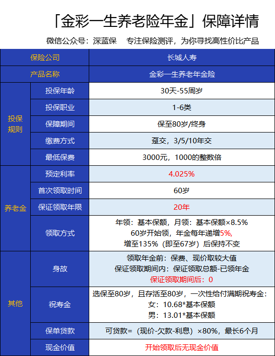 长城人寿最近推出了一款产品——金彩一生养老年金险。