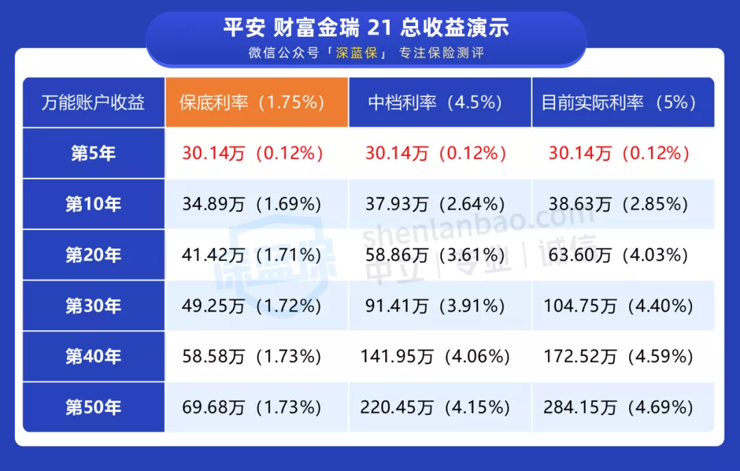 财富金瑞 21 的万能账户保底利率只有 1.75%,比较一般。