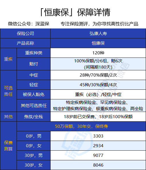 弘康恒康保的保障虽然很全面,但缺乏了对同种疾病的二次保障。