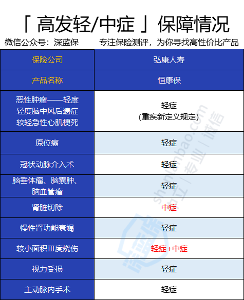 这样一看,弘康恒康保的轻、中症保障还算可以。