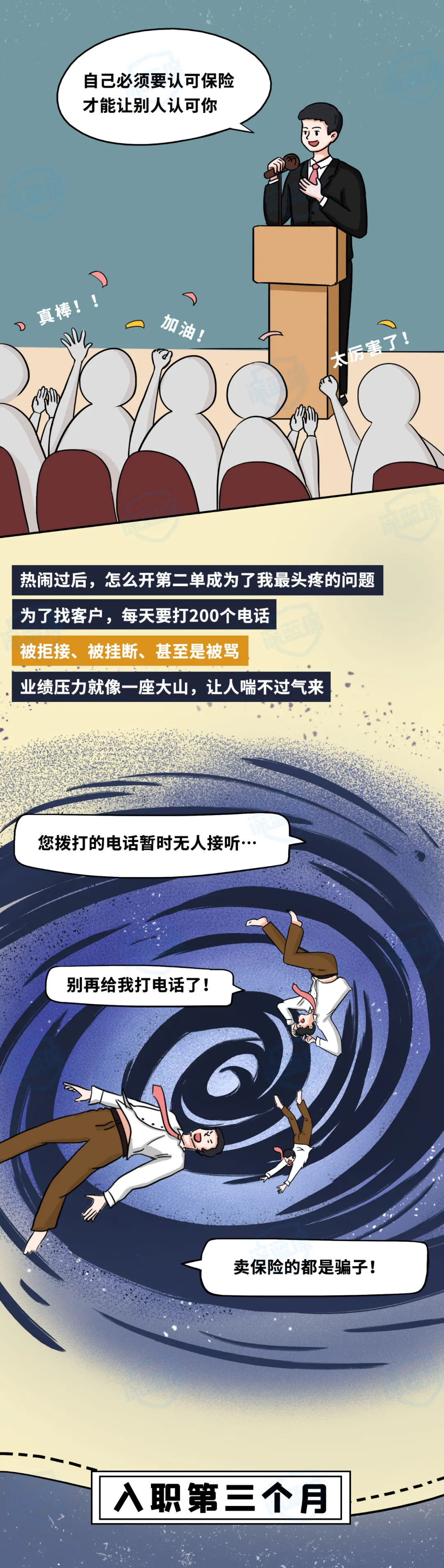 在各大招聘网站,保险公司用「高收入、不打卡」吸引了一个又一个的求职者。