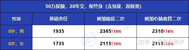 注:上表的保费,身故均选择返保额进行计算