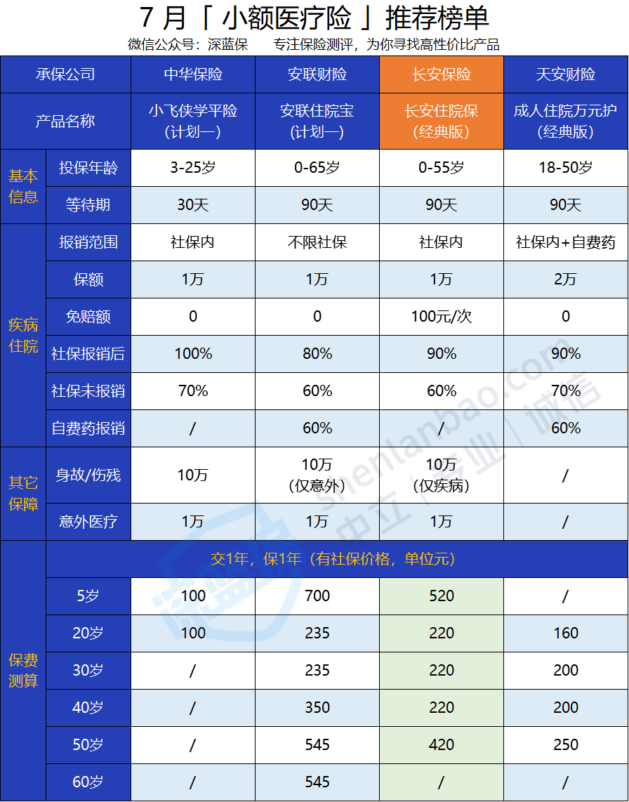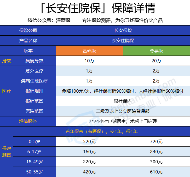 深蓝君挑选了以下几款产品,并将长安住院保与它们进行对比: