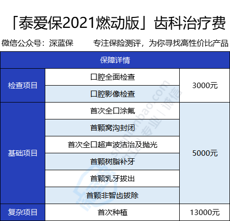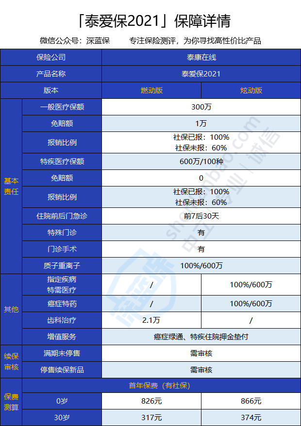 泰康泰爱保2021基础保障都有,炫动版能报销指定疾病特需医疗费及癌症特药,燃动版能报销齿科医疗费,价格不贵,性价比很高。