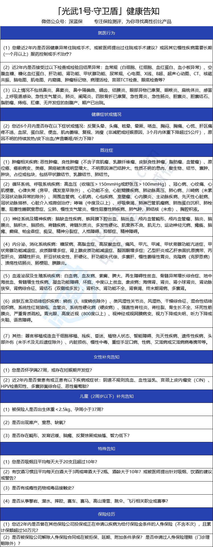 今天,深蓝君就带着大家一起来看一下,光武1号守卫盾重疾险,健康告知究竟严不严格?不符合健康告知又该怎么办?