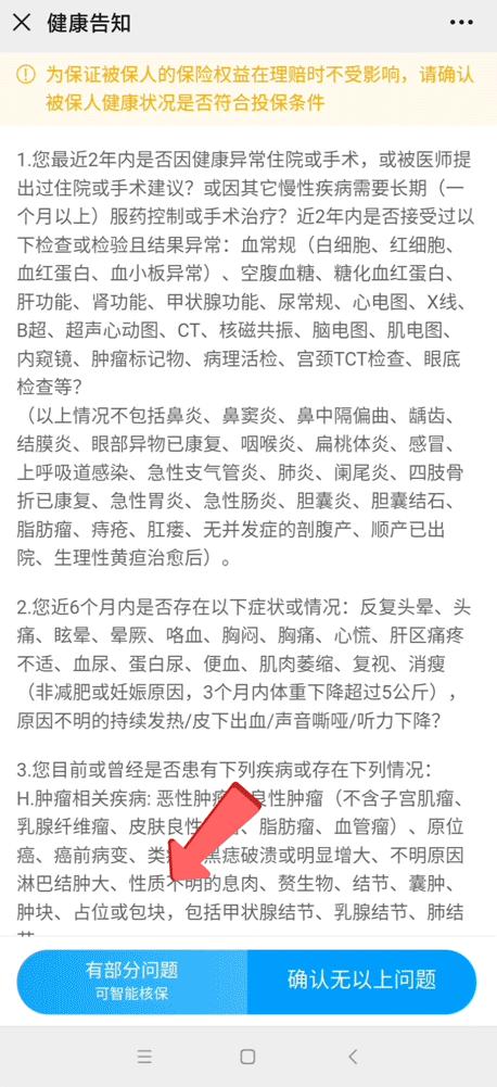 这里也要提醒大家:健康告知没有问到的疾病,即使智能核保中仍然有这一项,以健康告知为准,不用再核保。