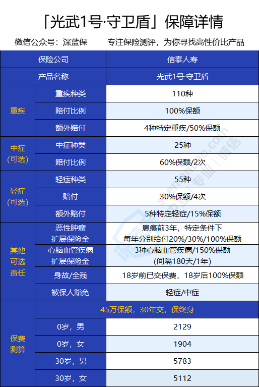 最后,我们再来回顾一下光武1号守卫盾重疾险的保障详情,具体如下: