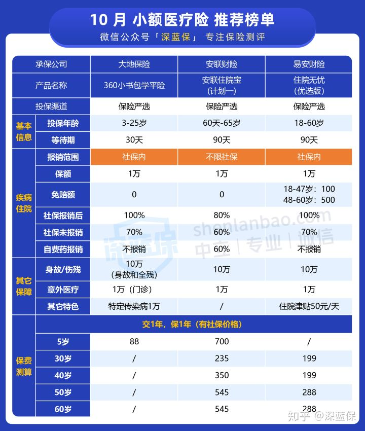 考虑到小额医疗险不少朋友都很关心,bob体育半岛入口 实验室也为大家整理了 3 款不错的产品。