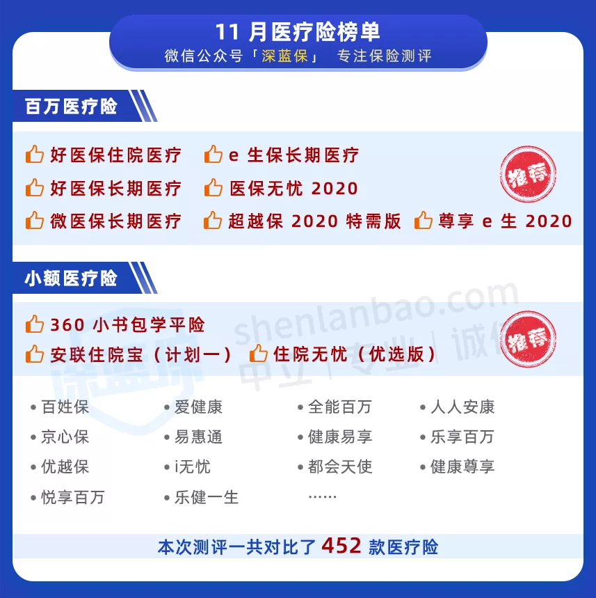 11月医疗险排名出炉!最高性价比的百万医疗险、小额医疗险都在这里!