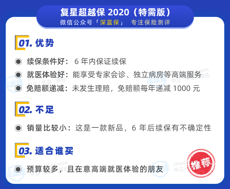 超越保2020 特需版虽然价格比其它产品贵,但能报销特需部的治疗费。