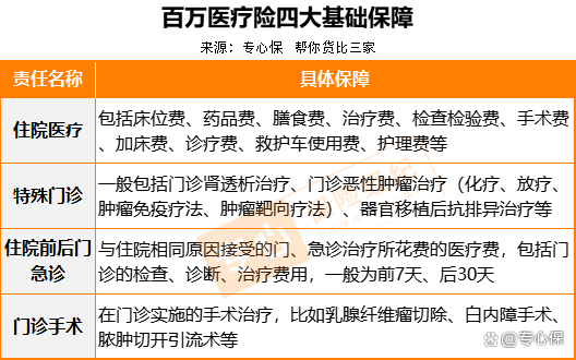蓝医保虽然四项保障都有,但特殊门诊归类到了大病医疗中。