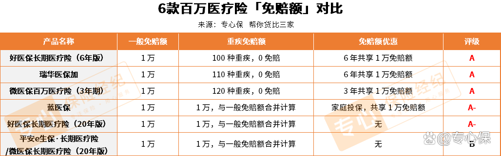 评A的3款,重疾零免赔,还有6年共享1万免赔额的优惠,表现最好。