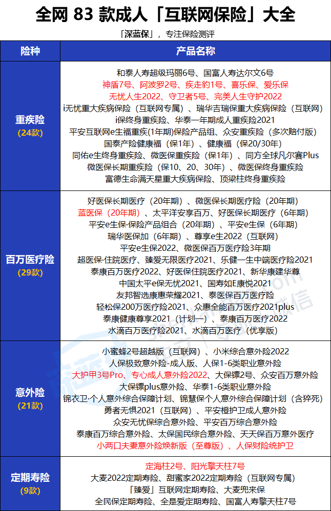 更新内容:新增8款重疾险+3款意外险+2款定期寿险。
