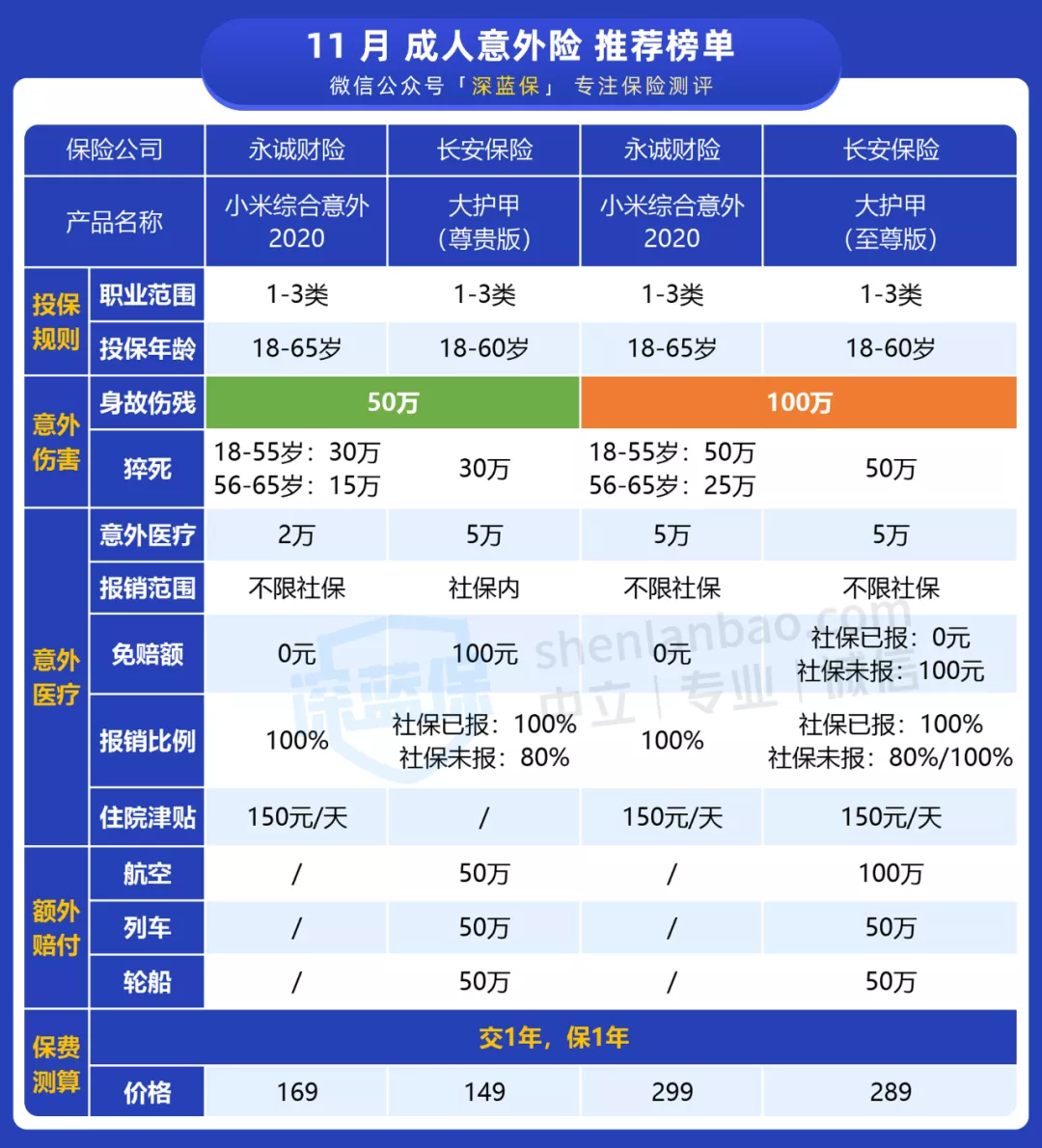 下半部分则是2020年11月份意外险排名榜,可以选择性阅读。