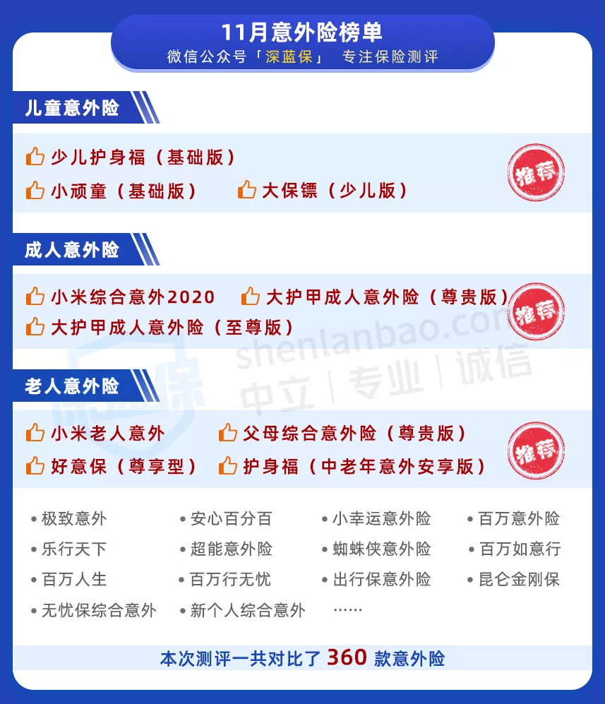 11月意外险性价比排名榜,一家老少都适用!(小顽童/护身福/小米综合意外/大护甲)