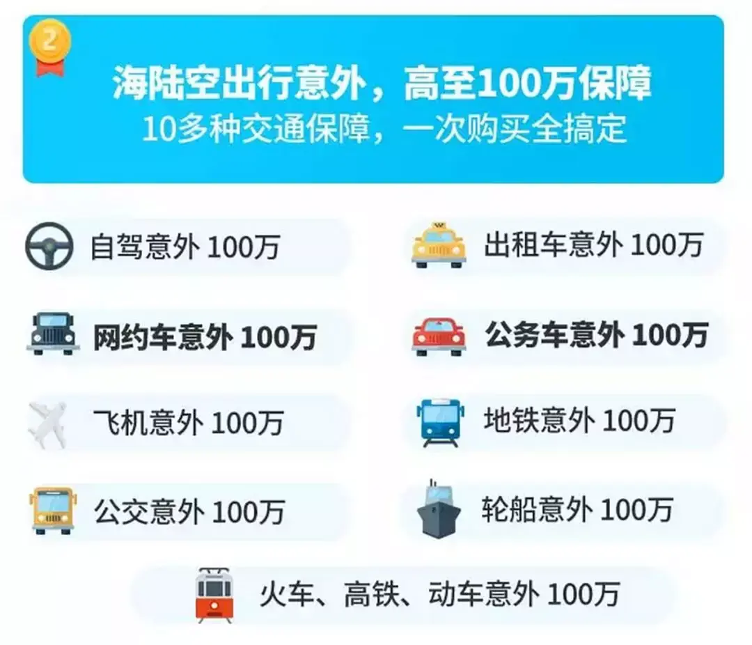 自驾车、网约车、飞机等意外身故,可赔 100 万