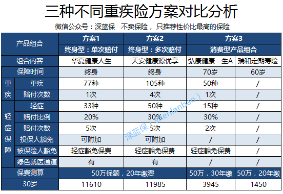 深蓝君也测算过,同样选择30年缴费,几款纯重疾险的价格是相差不大的,但是具体的投保要求和保障会有所差异。
