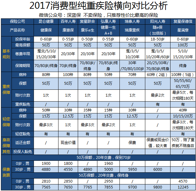 二、2017消费型纯重疾险横向对比分析